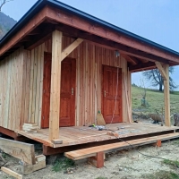 Kot pilotni objekt smo na lokaciji sedeža zadruge v idiličnem okolju kmetije Vrhivšek na Lindeku postavili manjši objekt s funkcijo biološkega kompostišča, pri čemer smo kot skelet uporabili les, kot polnila sten in strehe pa konopljin beton. Dodatna zanimivost objekta je vgrajena tehnologija biokompostiranja z uporabo permakulture in visokodušično potratne vegetacije.