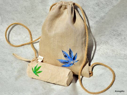 KonopKo nahrbtnik RASTA, unikaten potisk list konoplje