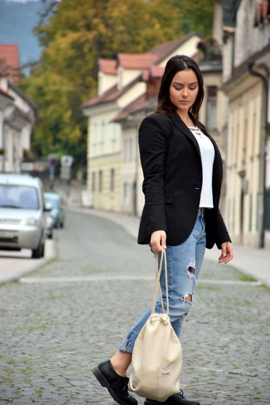 KonopKo nahrbtnik JEANS, potisk modri list konoplje