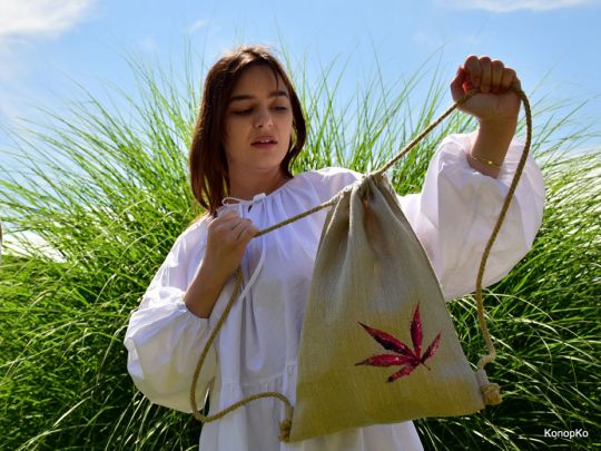KonopKo nahrbtnik PINK, unikaten potisk list konoplje