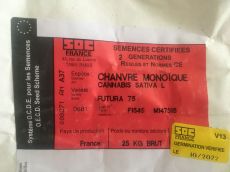 Certified hemp seed for sowing, FUTURA 75 (Cannabis sativa L), price for 25 kg bag is 245,66 EUR (VAT excl.), EXW our warehouse in Ljubljana. Will be on stock and ready for delivery from mid March - collecting preorders/reservations until end of February 2023, later availability depends on stock!