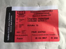 Certificirano seme industrijske konoplje (Cannabis sativa L) sorte FUTURA-75, vpisane v EU sortno listo, ena najbolj popularnih sort konoplje v Sloveniji (zaradi idelanega razmerja CBD/THC in obvladljive višine rastline).
