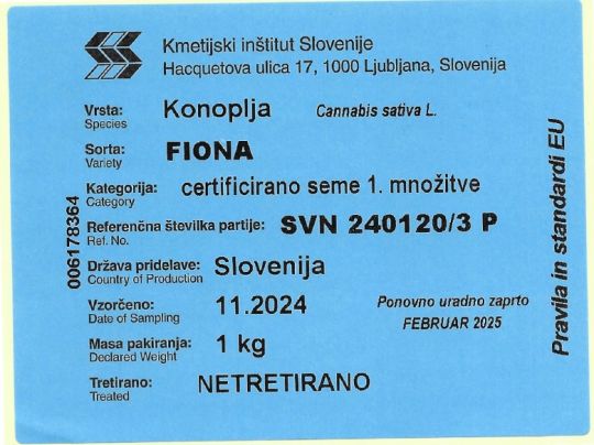 Seme konoplje za setev, slovenska sorta FIONA, 1kg