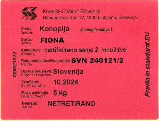 Seme konoplje za setev, slovenska sorta FIONA, 5kg